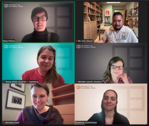 The UC Press FirstGen Program supports first-generation scholars not only in the publication of their work, but also by fostering a sense of community through virtual events and online resources where scholars share their experiences and hear directly from publishing professionals. These resources are available to all.