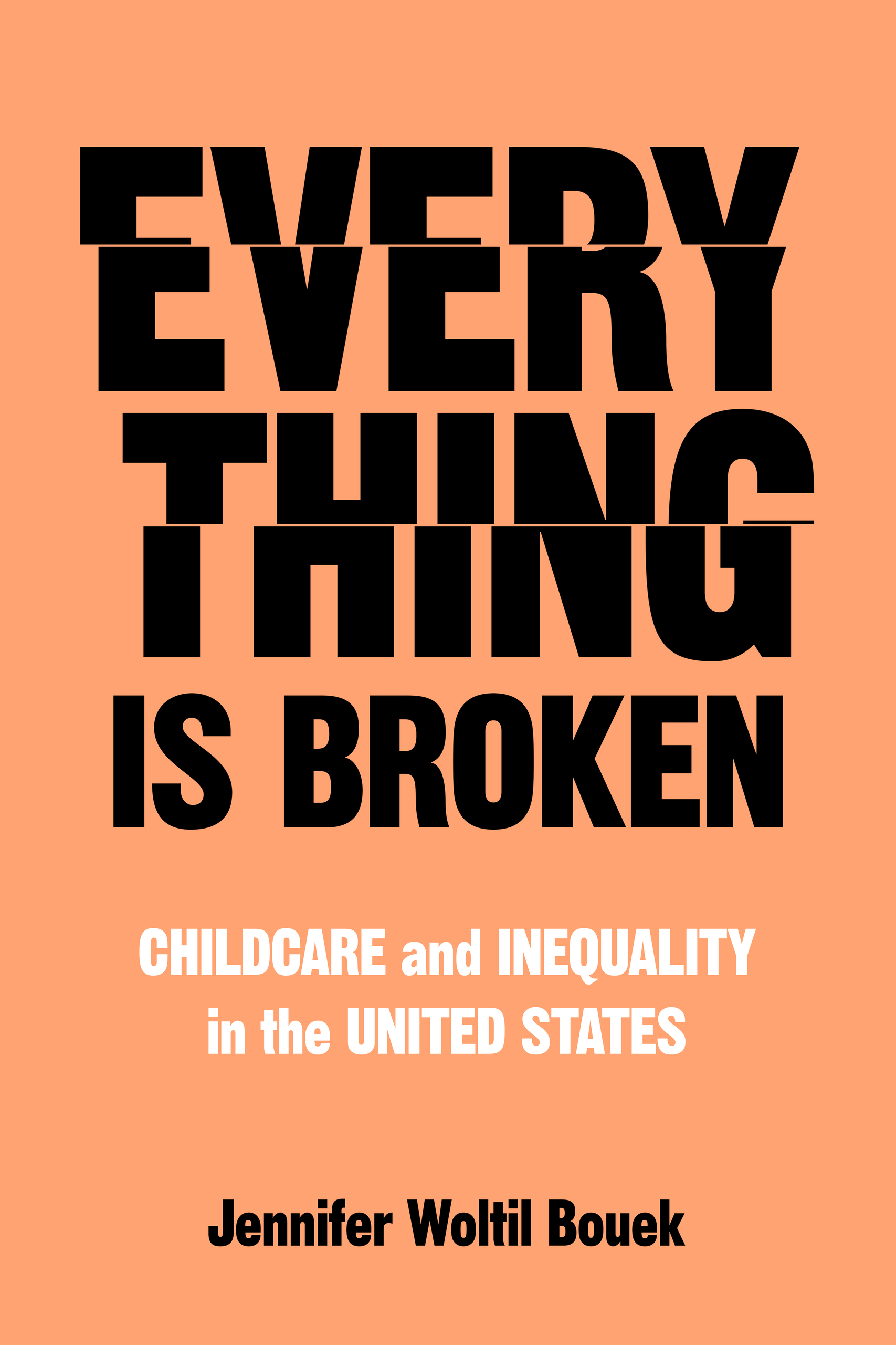 Based on years of ethnographic and administrative research, sociologist Jennifer Woltil Bouek explores how mothers search for, secure, and maintain care for their children within this complex organizational field—and the heavy costs they bear in the process. Her work illustrates just how the American childcare system sorts and stratifies, leading to disparate (and sometimes surprising) outcomes. Grounded in personal narratives drawn from a diverse sample of mothers, childcare providers, bureaucrats, and policy advocates, Everything Is Broken tells a striking story of access and exclusion from the inside out.
